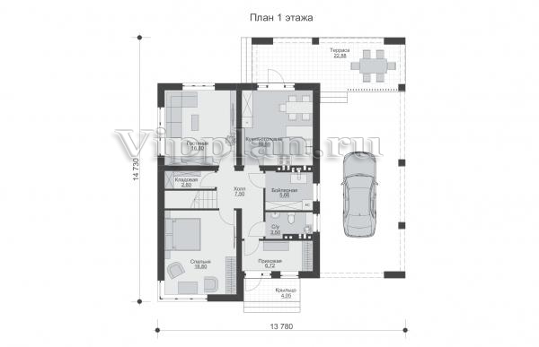 | Размеры дома: | 14.73м×13.78м |