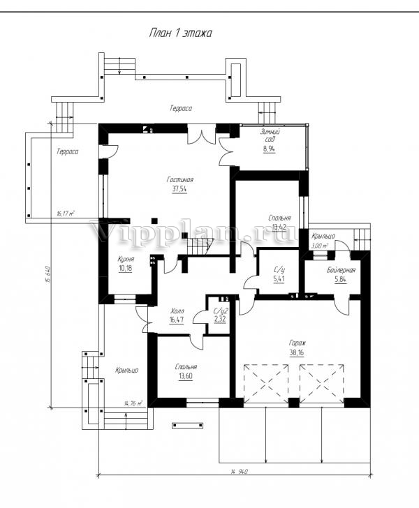 | Размеры дома: | 14.94м×15.64м |