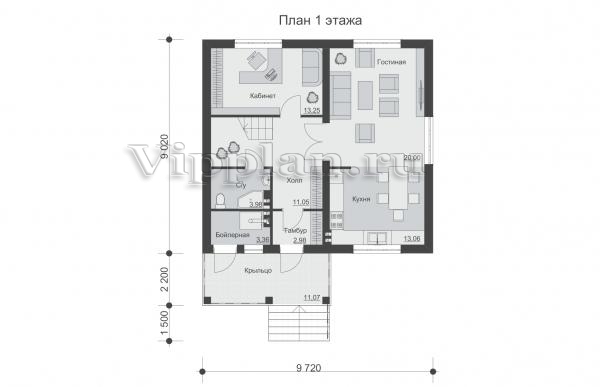 | Размеры дома: | 9.72м×12.72м |