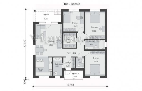 | Размеры дома: | 12.03м×12.83м |